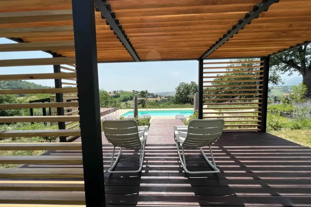 Casafaro is our agriturismo located on a small distance from Petritoli. We offer three luxury holiday apartments with amazing panoramic views on the sloping hillsides and the impressive Sibillini mountains.